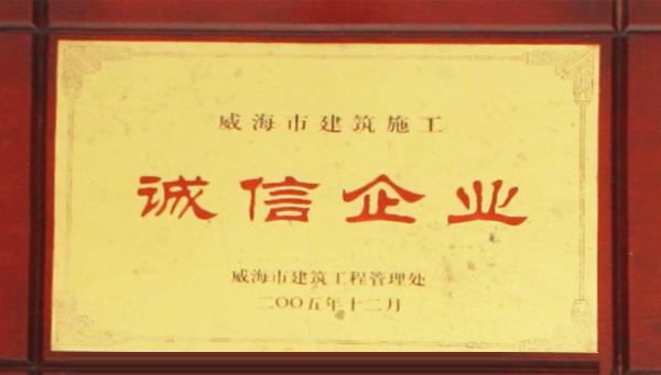 公司連續(xù)八年榮獲威海市“誠信開發(fā)企業(yè)”、“建筑施工誠信企業(yè)”,連續(xù)九年被評為威海市級“守合同重信用企業(yè)”,多次被評為威海市“市級文明單位”、“質量管理先進企業(yè)”、 “安全管理先進企業(yè)”,乳山市“優(yōu)秀企業(yè)”、“先進民營企業(yè)”、“納稅明星企業(yè)”,在社會上逐步樹立了誠信、穩(wěn)健的企業(yè)形象。